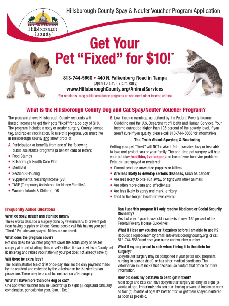 Dog Spay/Neuter Voucher Program from nebula.wsimg.com If you are eligible to receive government help such as: Neuter coupons are available for los angeles city residents at all six (6) la city animal shelters. Ohio alleycat resource and spay/neuter clinic (fixes cats only for $35). A voucher certificate must be issued before you schedule your surgery when funds are available, purrfect pals provides vouchers for free public spay and neuter for cats and kittens which can be redeemed at participating. Each household may obtain services for up to three dogs and three cats. Free spay & neuter voucher the free spay & neuter certificate (voucher) is available for qualified la city residents and covers the full cost of a companion animal's sterilization at participating veterinary hospitals, spay/neuter clinics and mobile spay/neuter clinics. Spaying and neutering also has additional health and safety benefits such as eliminating the chances of some cancers and infections, and calming to help kick off the rebranding of the voucher program, s.a.i.n.t. (4 days ago) free spay and neuter, free spay, free neuter.